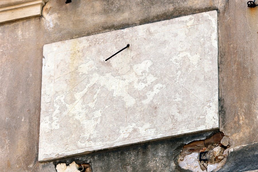Okomiti sunčani sat iz 1806. godine na južnom pročelju stambene zgrade.