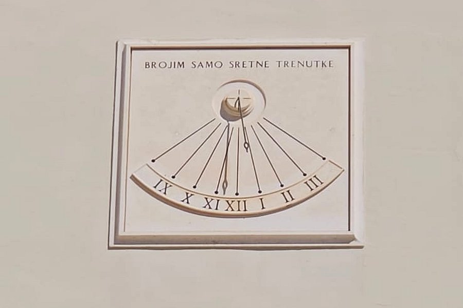A vertical sundial on the southern facade in the hotel courtyard. The sundial contains the inscription:
