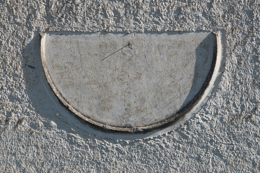 Vertical sundial on the bell tower of the church. The church was built in 1758, and the bell tower in 1829.