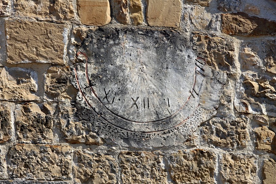 Okomiti sunčani sat na južnom pročelju kuće.