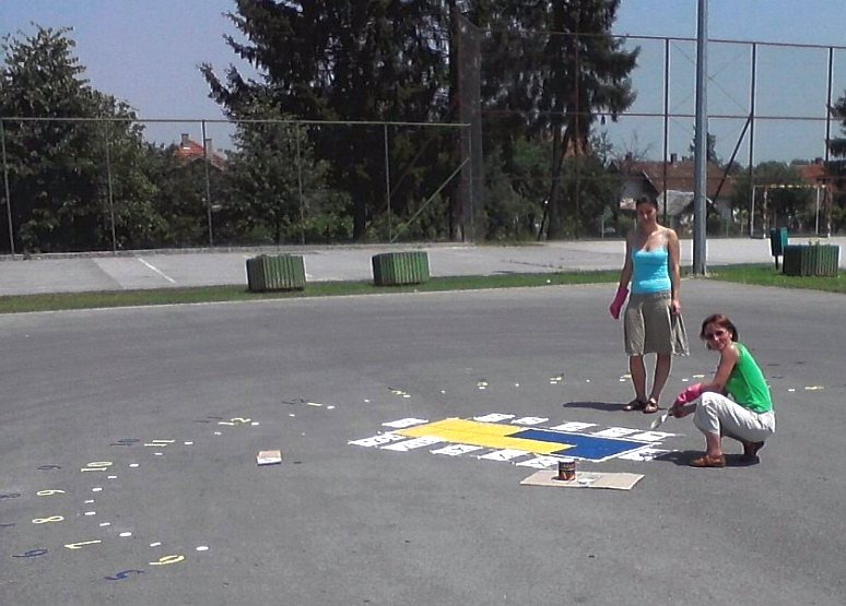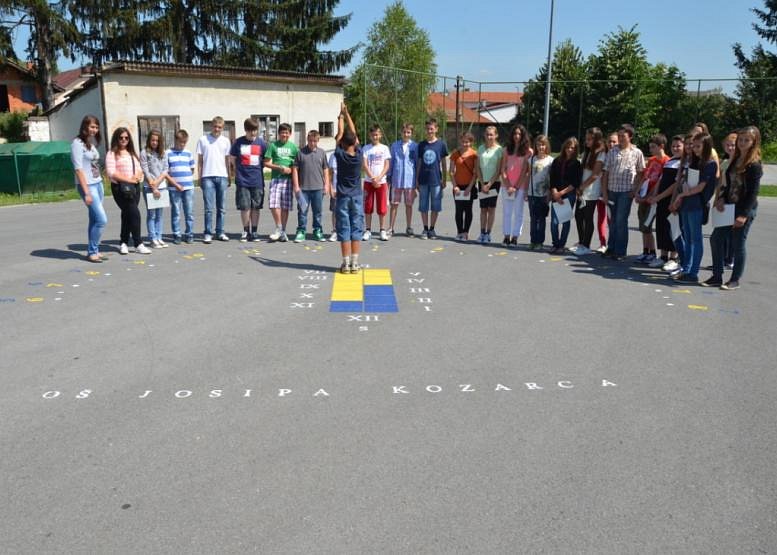 Analemmatic sundial on the playground behind Josip Kozarac elementary school. The sundial was made by Tijana Cvjetković, Martina Bukvić, Mira Safin Knezević and Zlatko F. Kovačević in 2013.