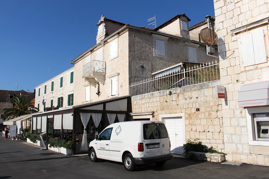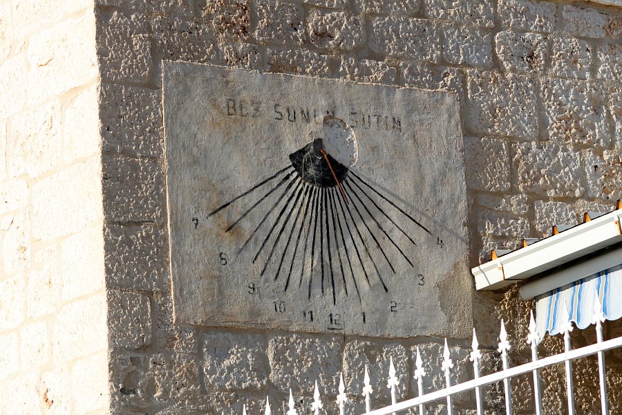 Vertical sundial on the south facade of the house along the waterfront, near the church of Our Lady of the Annunciation. It has the inscription "Without the sun, I'm silent."